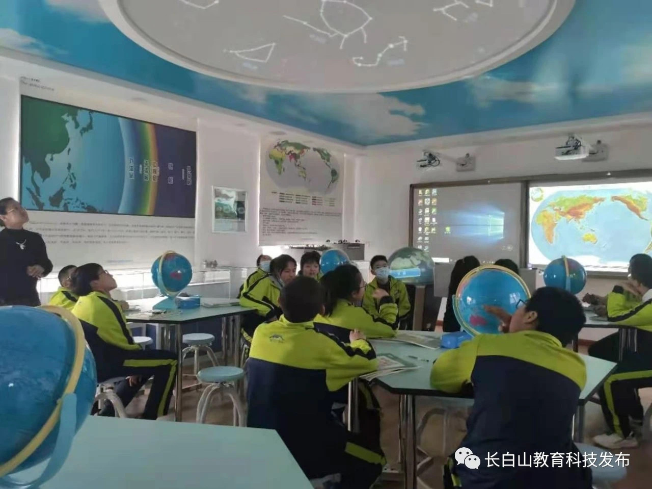 三間教室均配有數(shù)字立體地形、多點(diǎn)觸控多媒體球幕投影演示儀、天文演示儀以及數(shù)字模型等設(shè)備。學(xué)校老師精于鉆研,很快便能熟練使用各設(shè)備,并應(yīng)用于日常教學(xué)。